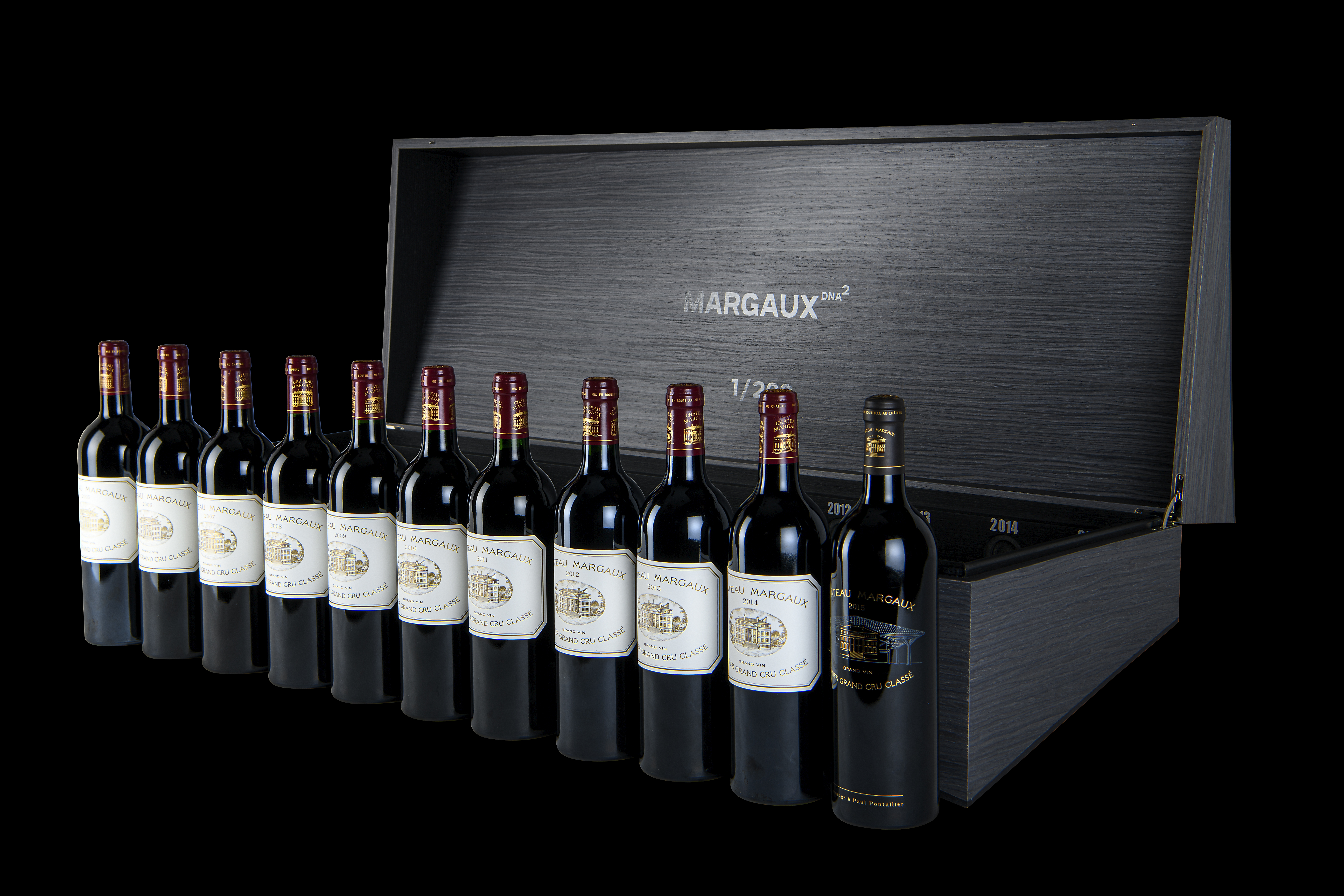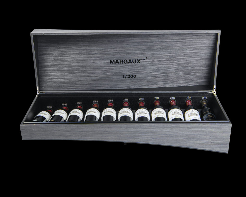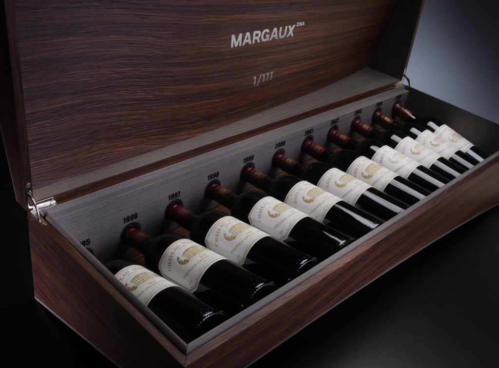 Hand-crafted wooden case of 11 bottles from Château Margaux.