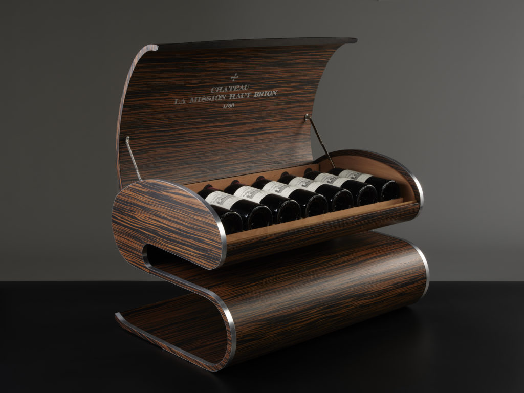Hand-crafted wooden case of 10 bottles from Château Haut Brion.