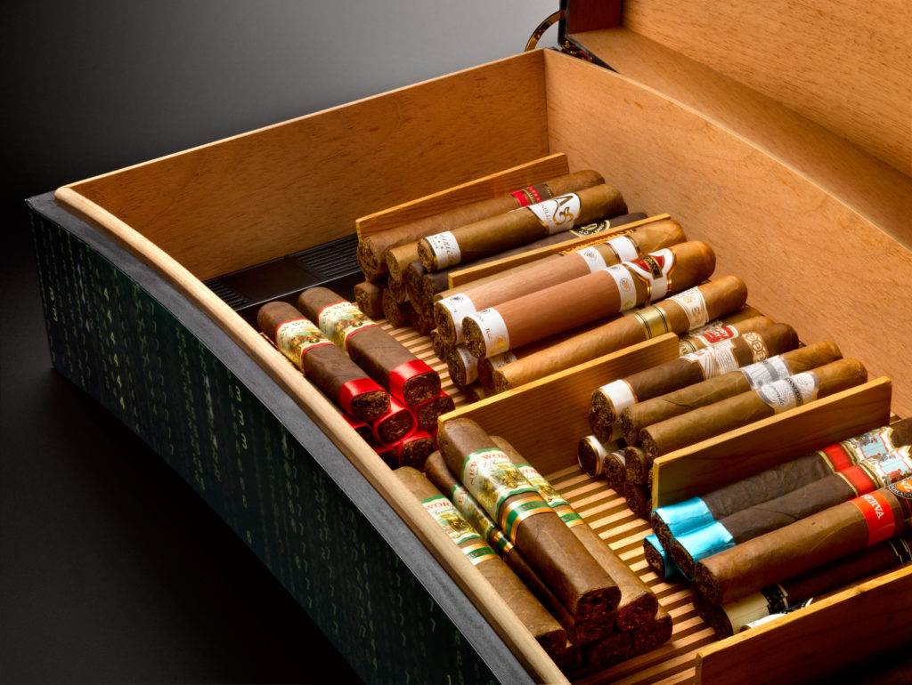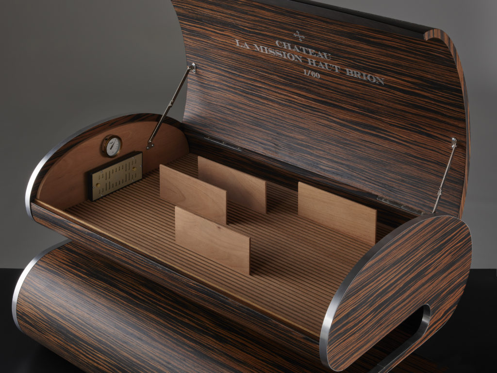 Limited edition of 60 numbered cases. Directly from the Château. One case of wine from initial cellar accompanied with exceptional cigars. Cedar interior with a capacity to store up to 300 cigars. Hydrometre and humidifiers included.